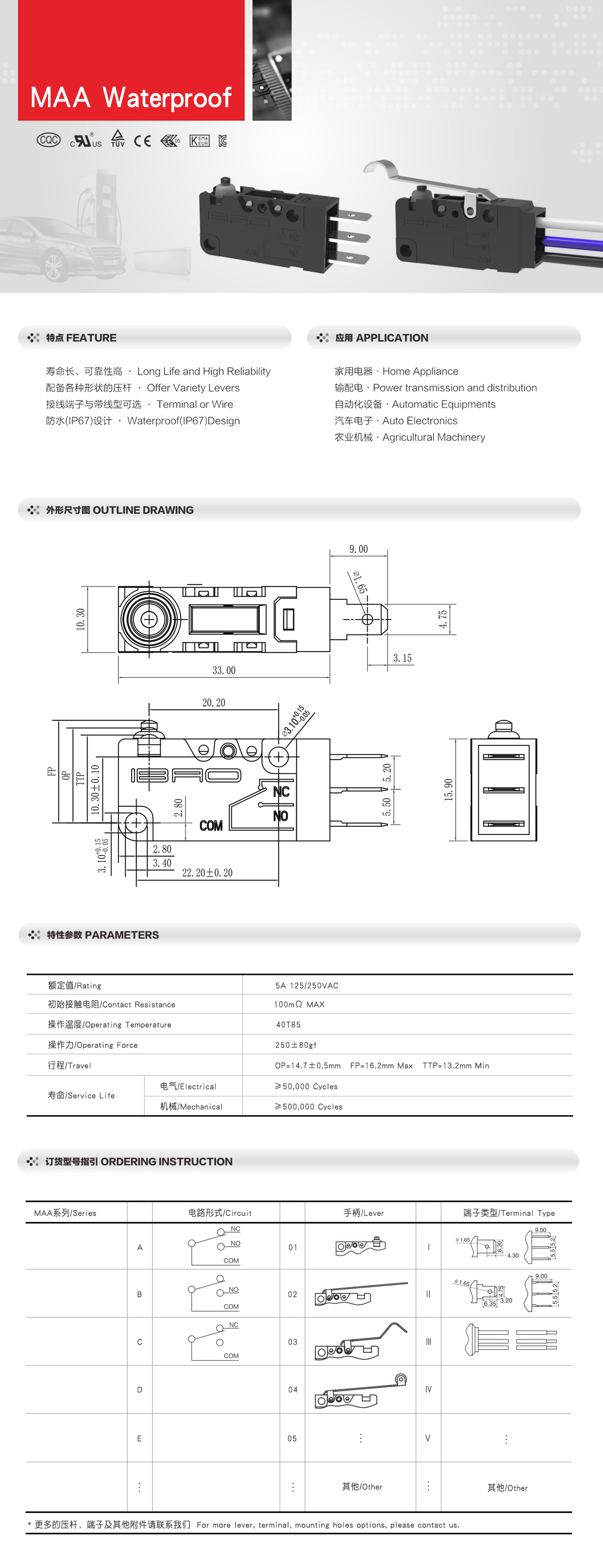 防水微动开关MAA系列