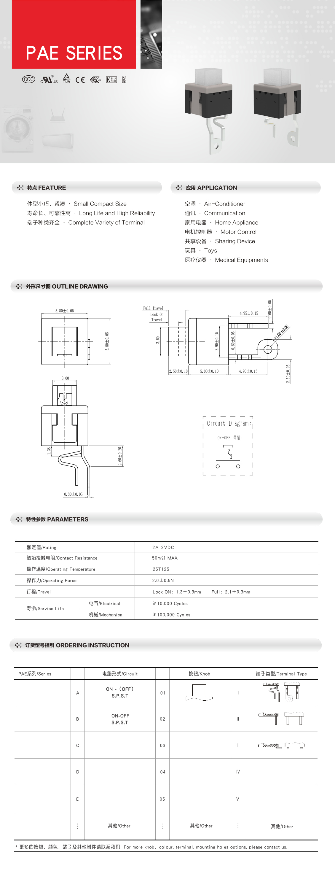 PAE系列 按钮开关 带锁/无锁 5.8mm按键开关