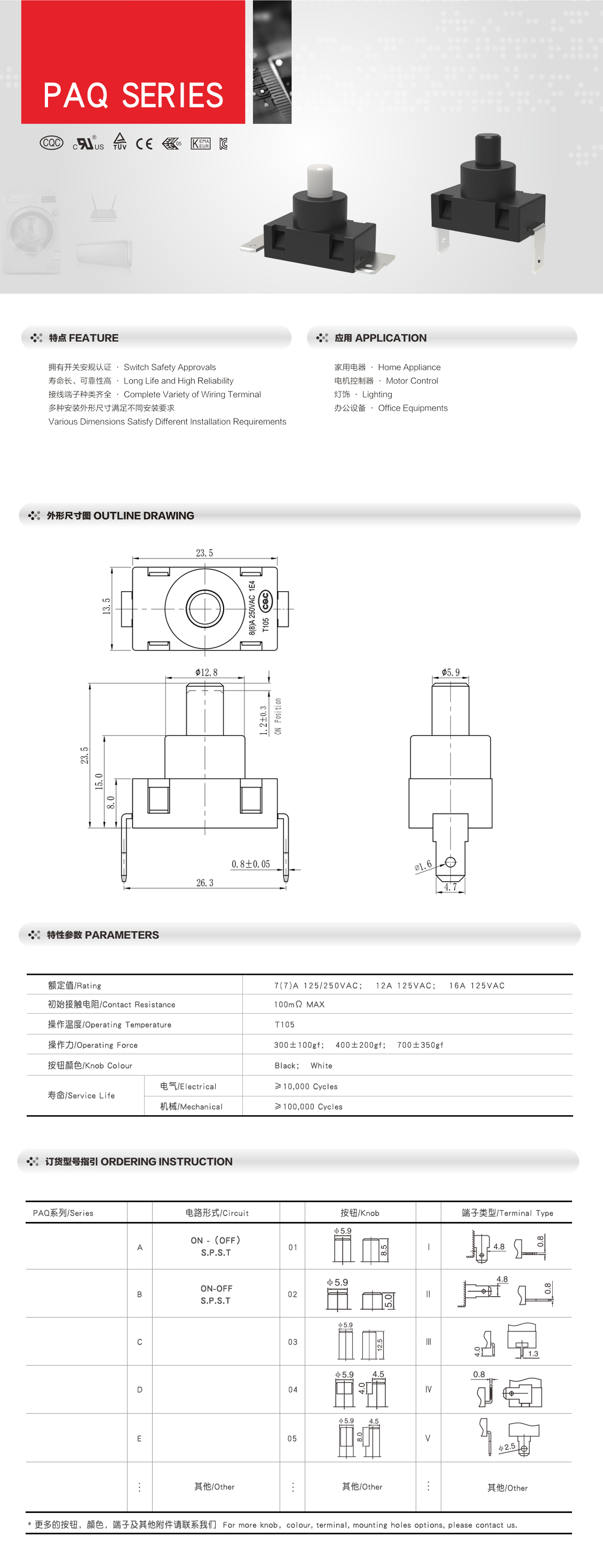 PAQ系列 小型按钮开关 自锁/无锁手电筒电源开关