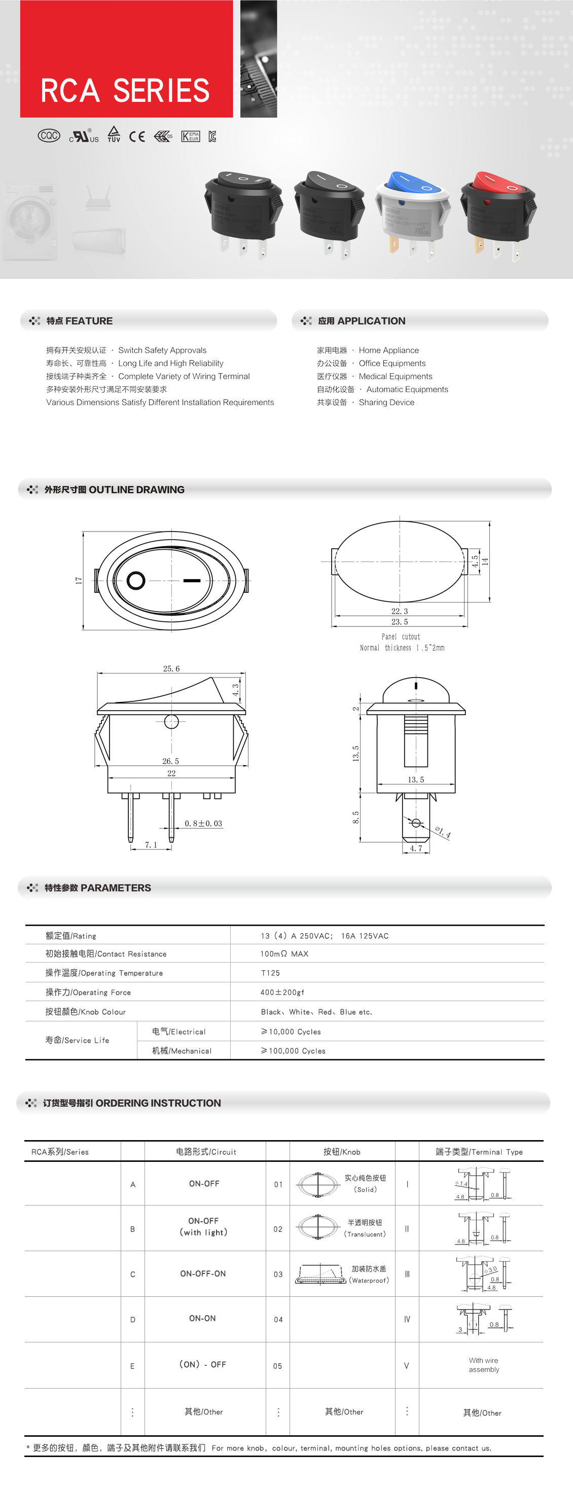RCA系列 船型开关 椭圆形翘板开关2档 多规格按钮端子