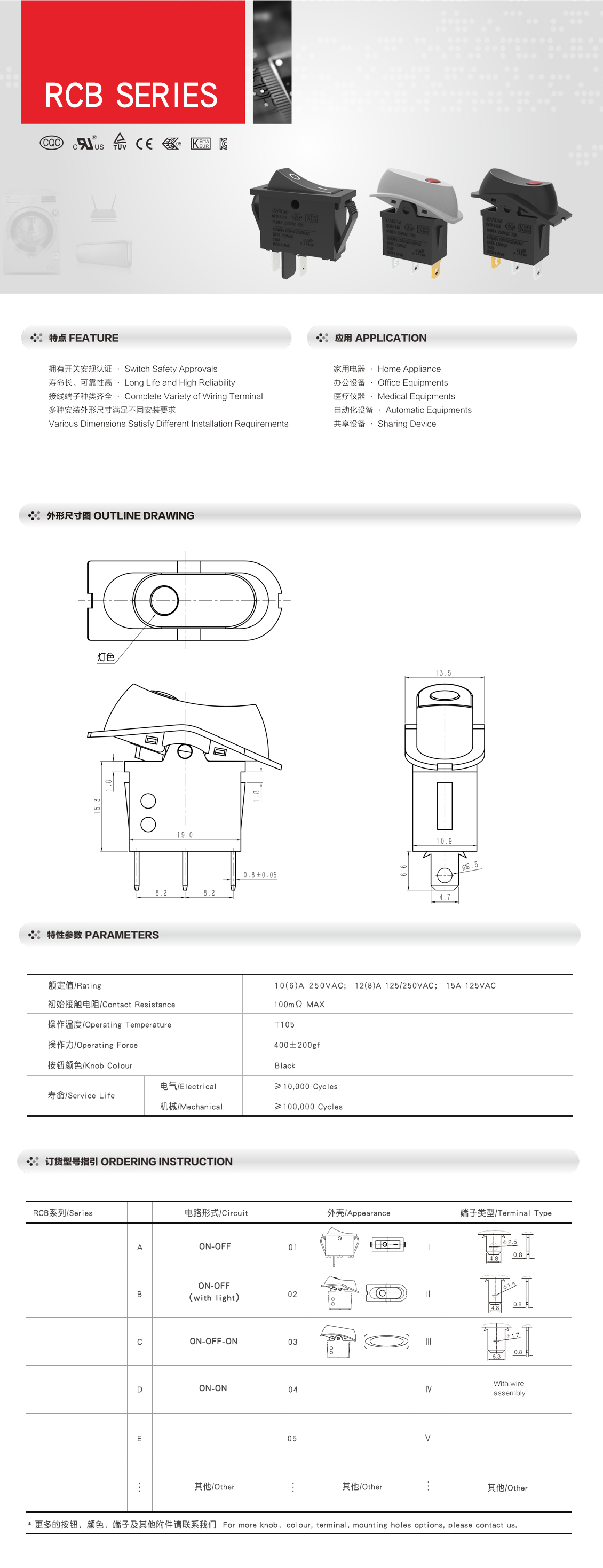 RCB系列 船型开关 翘板开关可带猫眼灯 多规格按钮端子