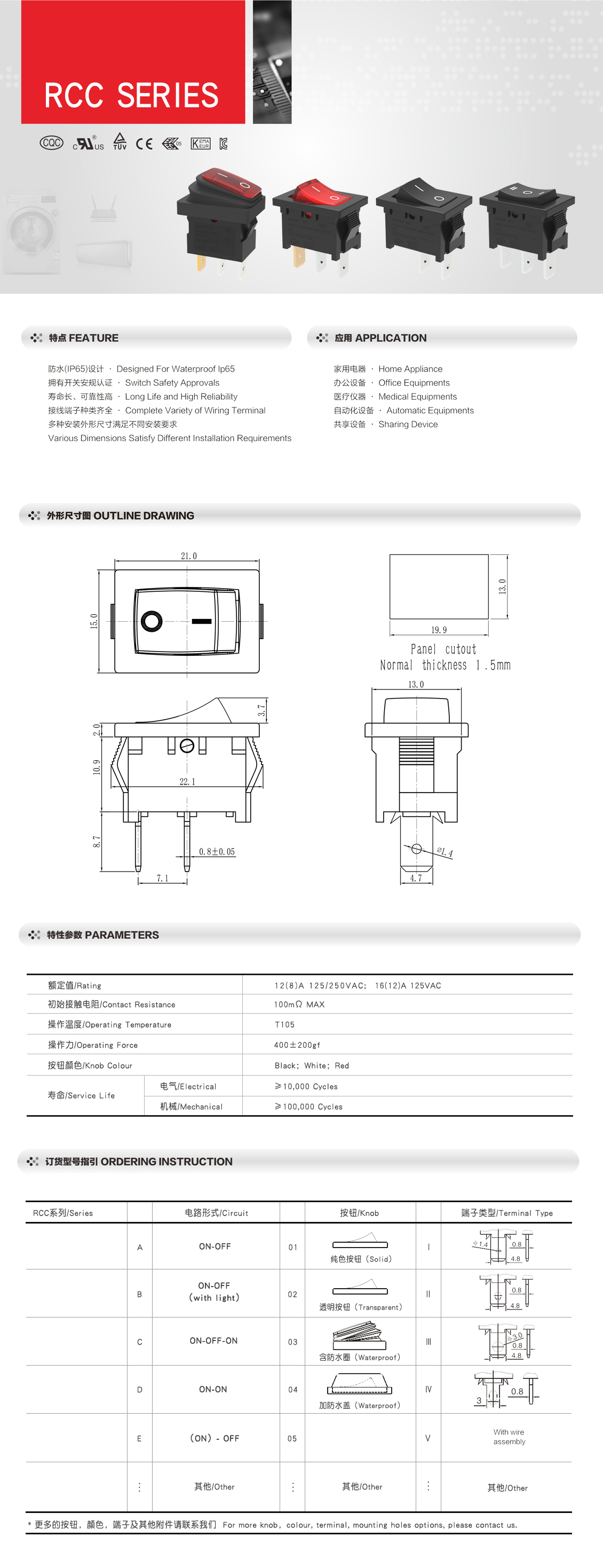 RCC系列 船型开关 方形翘板开关KCD1 3档/复位