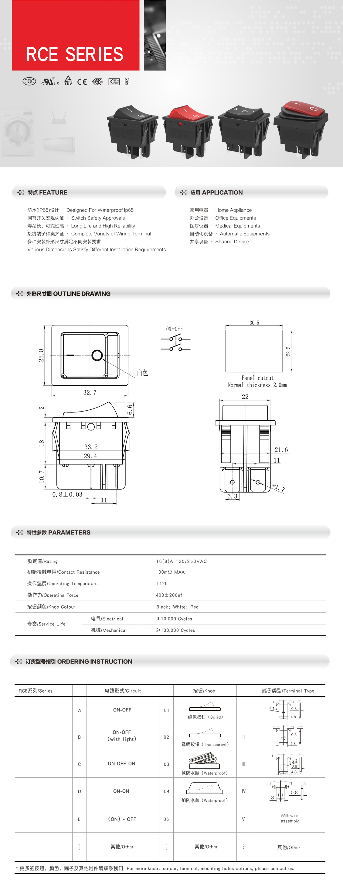 RCE系列 船型开关 方形翘板开关KCD4 双刀双掷2档3档