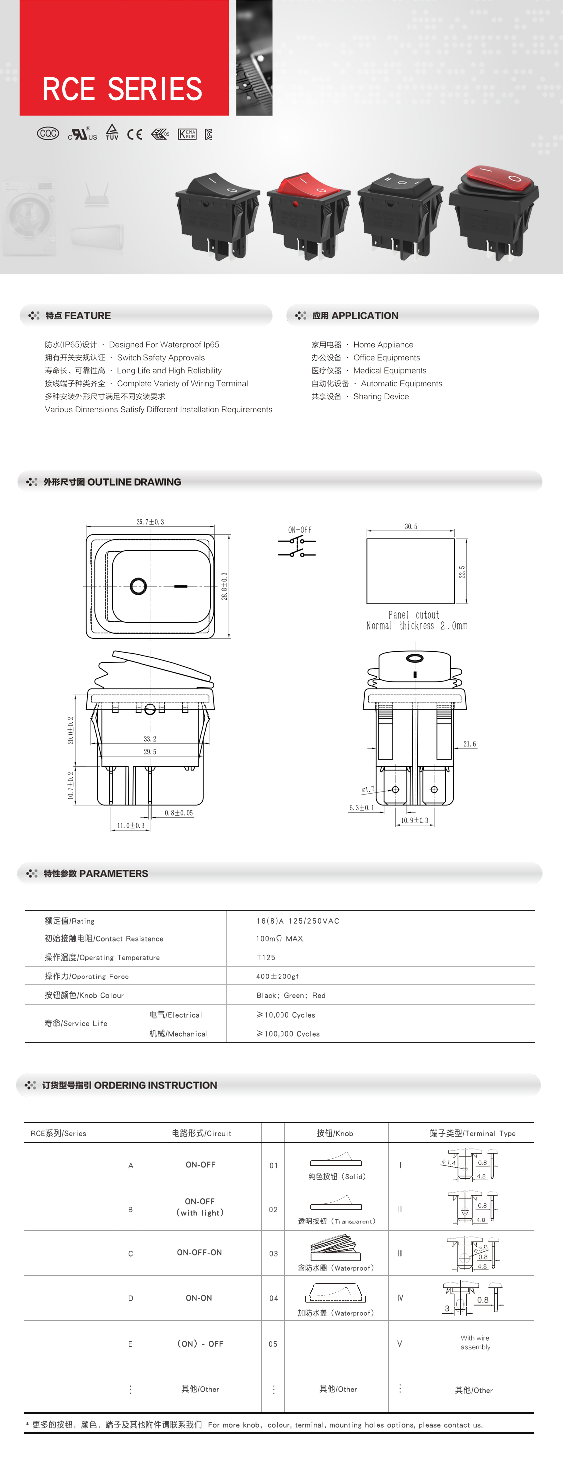 RCE系列 船型开关 方形翘板开关KCD4 双刀双掷2档3档