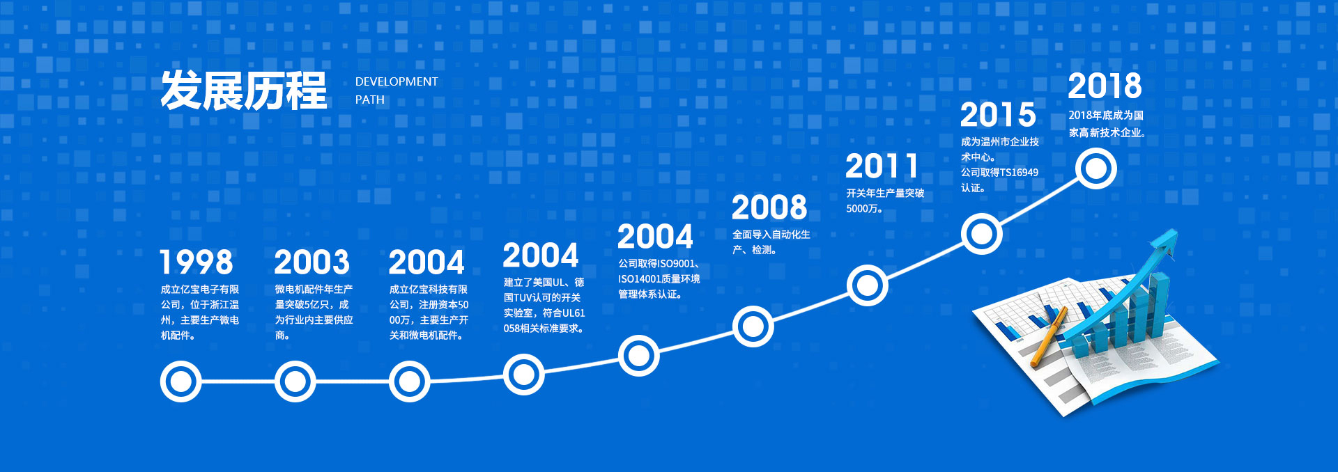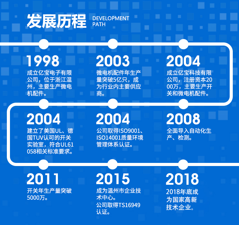 浙江ac米兰官网科技有限公司是一家专业从事设计、开发、制造电子电器开关、微电机配件及精密模具的生产企业,创立于1998年。所生产的产品广泛应用于家用电器、汽车部品、办公设备、物联网、医疗仪器、测量仪器、工业控制设备等。